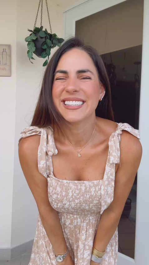 Tie shoulder strap smocked tiered midi dress. Wearing size Small.