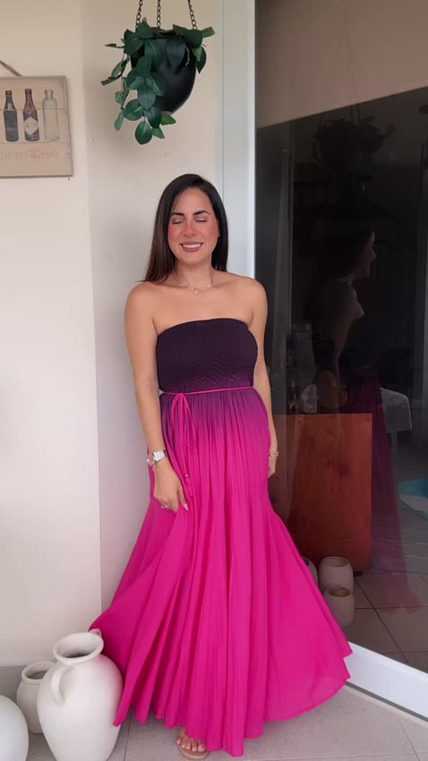GRADIENT PLEATING TUBE MIDI DRESS.ย