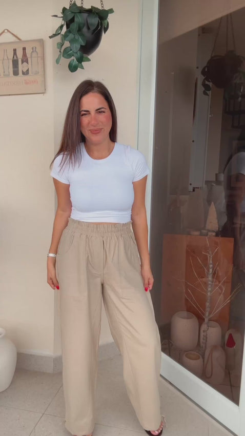 Smocked waist pants with drawstring detail at leg opening. Wearing size Small.