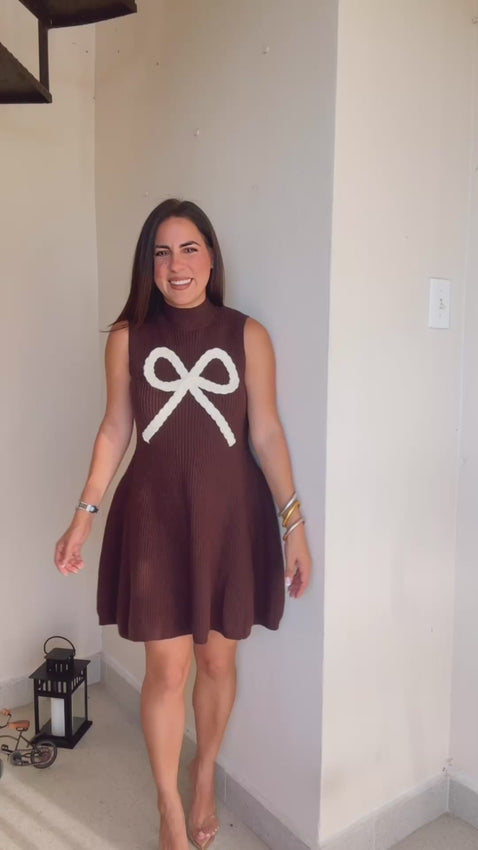 Braided bow knitted sleeveless fit and flare dress. Wearing size Small.