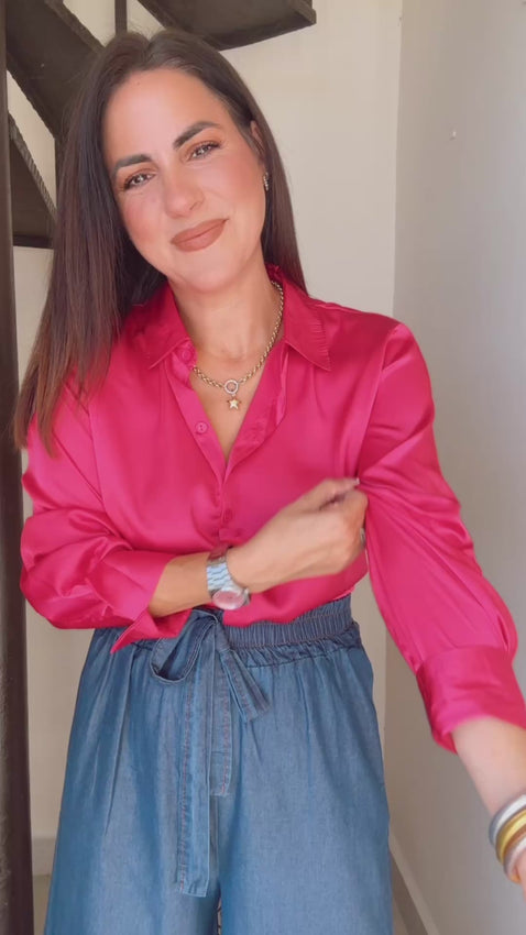 Magenta Satin Shirt Top
