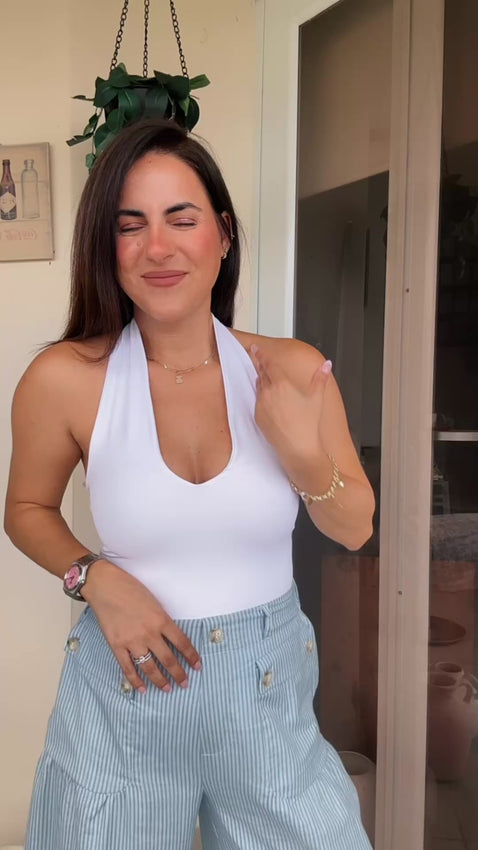 DOUBLE LAYER HALTER NECK BODYSUIT.